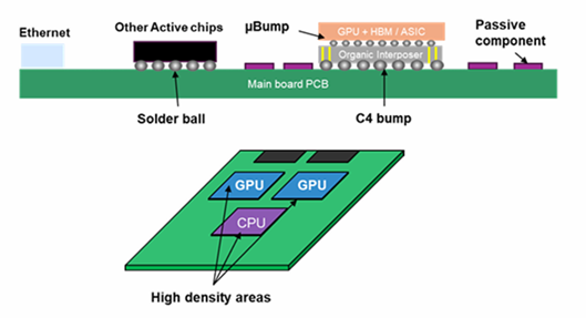 不過從設計概念到量產應用,仍有漫長的路要走。若以可量產的條件為前提,當前PCB線寬的製程極限約為30μm,與CoWoS的5μm相比差距明顯,這將使得佈線密度不足,得需要更多層數才能完成原本5μm等級的設計(這可能反而增加訊號傳輸路徑);且在數十GHz的高速傳輸下,線寬與線距精度直接影響阻抗控制與訊號完整性,而30μm等級PCB難以同時兼顧低損耗與低串擾;此外,PCB所使用的樹脂與玻纖材料,在高速訊號性能上也難以媲美ABF材料。更進一步,CoWoP因為直接將晶片鍵合到主板上,一旦晶片出現缺陷,整塊PCB即可能報廢,加上晶片價格高昂,將使板廠承擔極高的良率與成本風險。