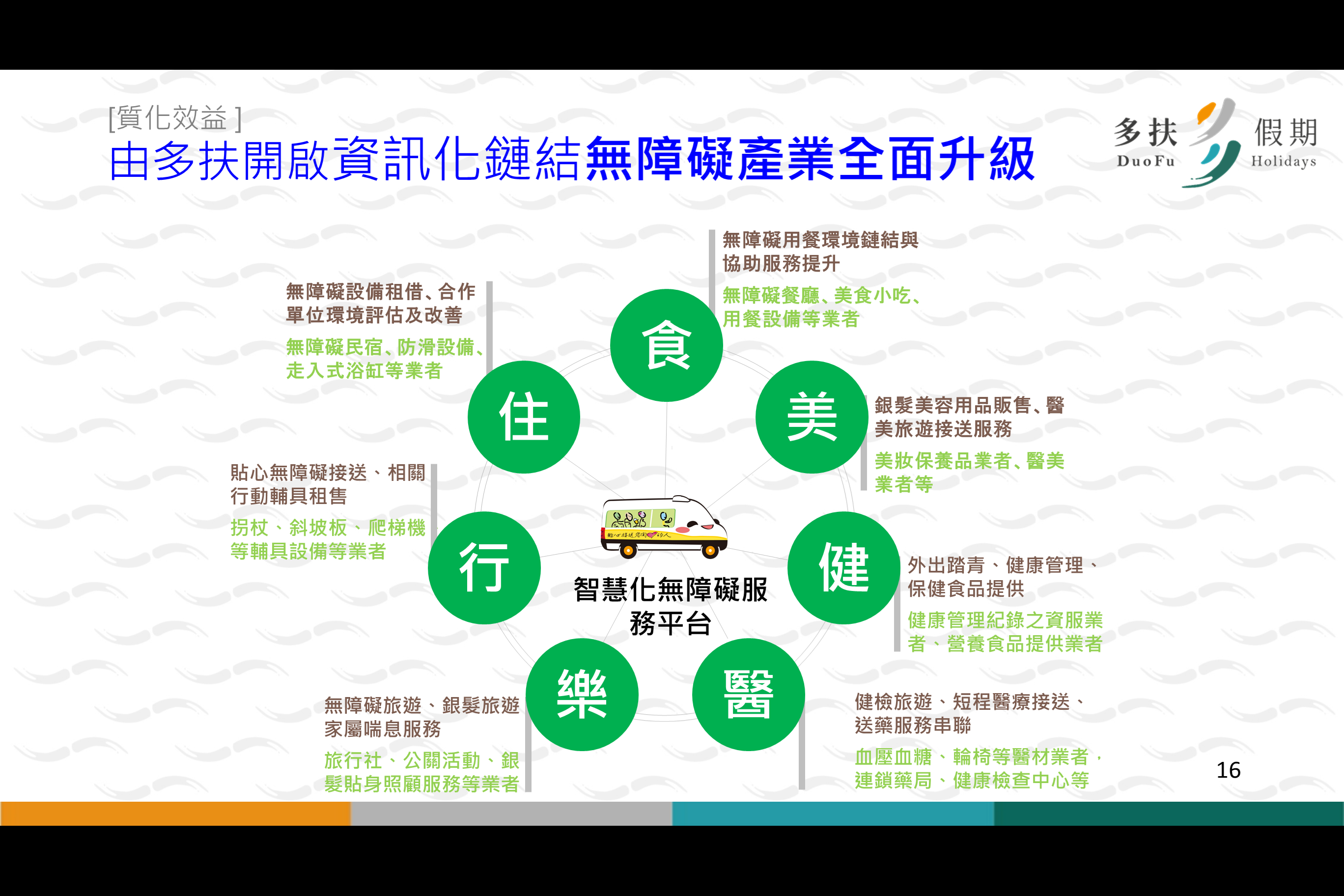 多扶聚焦在發展台灣無障礙交通,推廣台灣無障礙旅遊,達到『讓照護者和被照護者可以同時喘息』的使命!藉由多扶的支持而恢復生活的正軌,正是多扶要永續發展的方向。