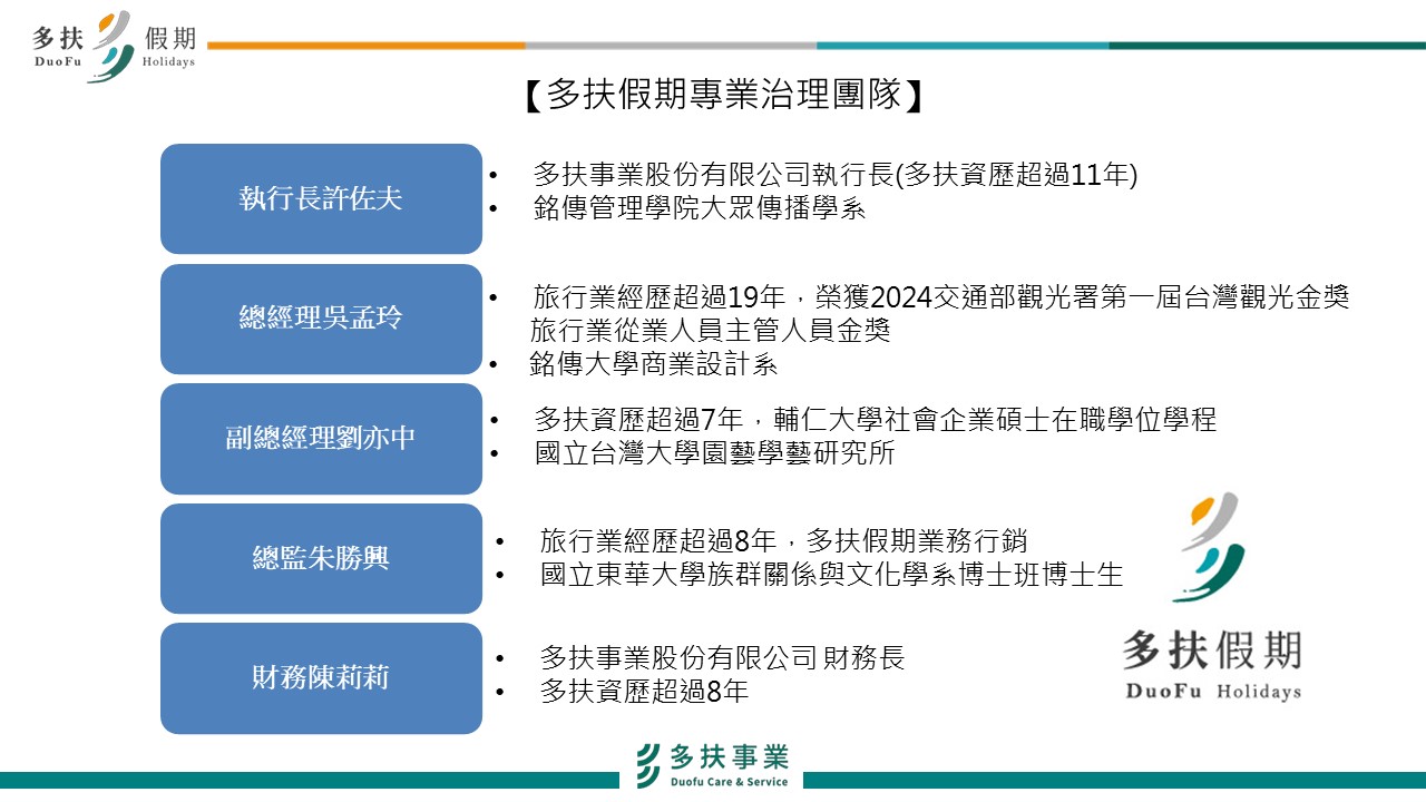 多扶成立旅行社之前,主要的服務項目是以「無障礙接送服務」為主,創業十餘年來,多扶接送致力於讓行動不便的朋友、長輩與家人可以得到受尊重的交通服務,另外,台灣有數十萬棟沒有電梯的老舊公寓,困住了身障朋友出門的希望。多扶也是台灣第一家開辦『爬梯機』服務,同時提供水平移動和垂直移動,完整解決困擾了身障朋友下不了樓無法出門的問題。